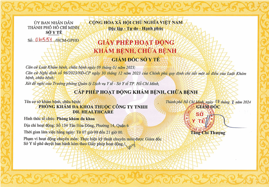 | GIẤY PHÉP HOẠT ĐỘNG | 04551/HCM-GPHĐ do Sở Y Tế – Cấp ngày 07/08/2024 |